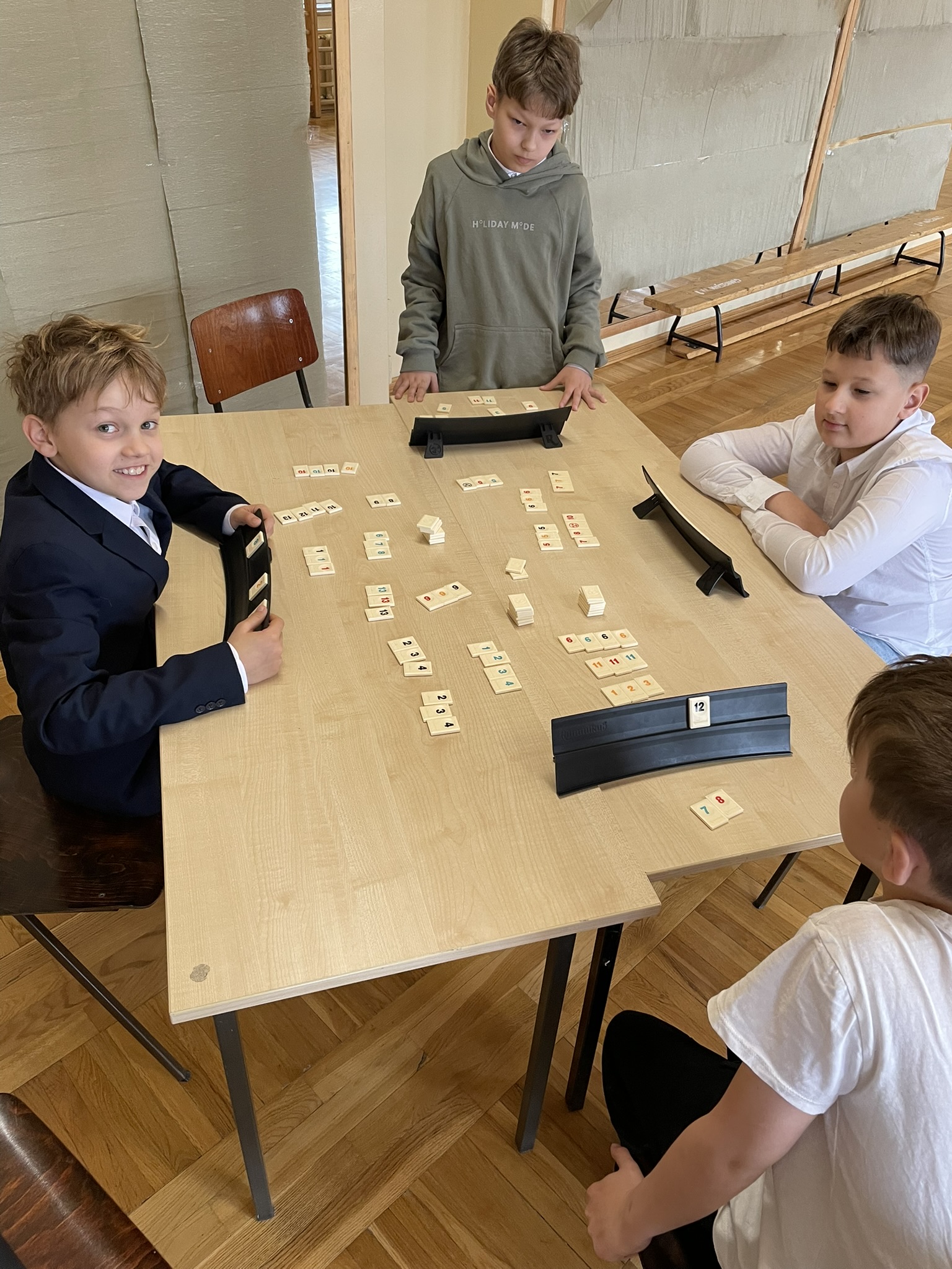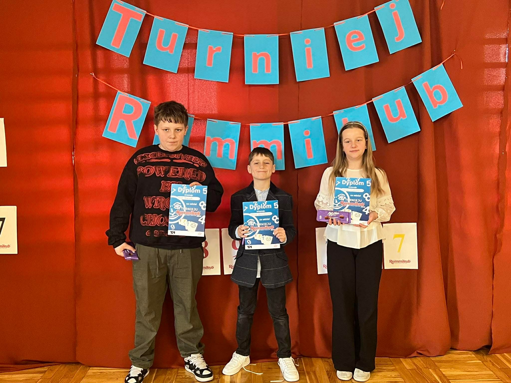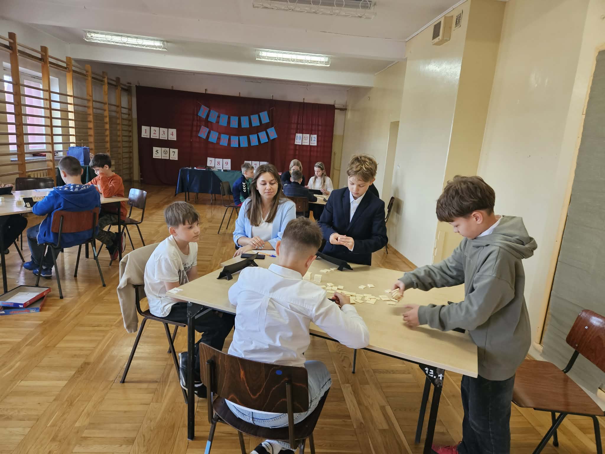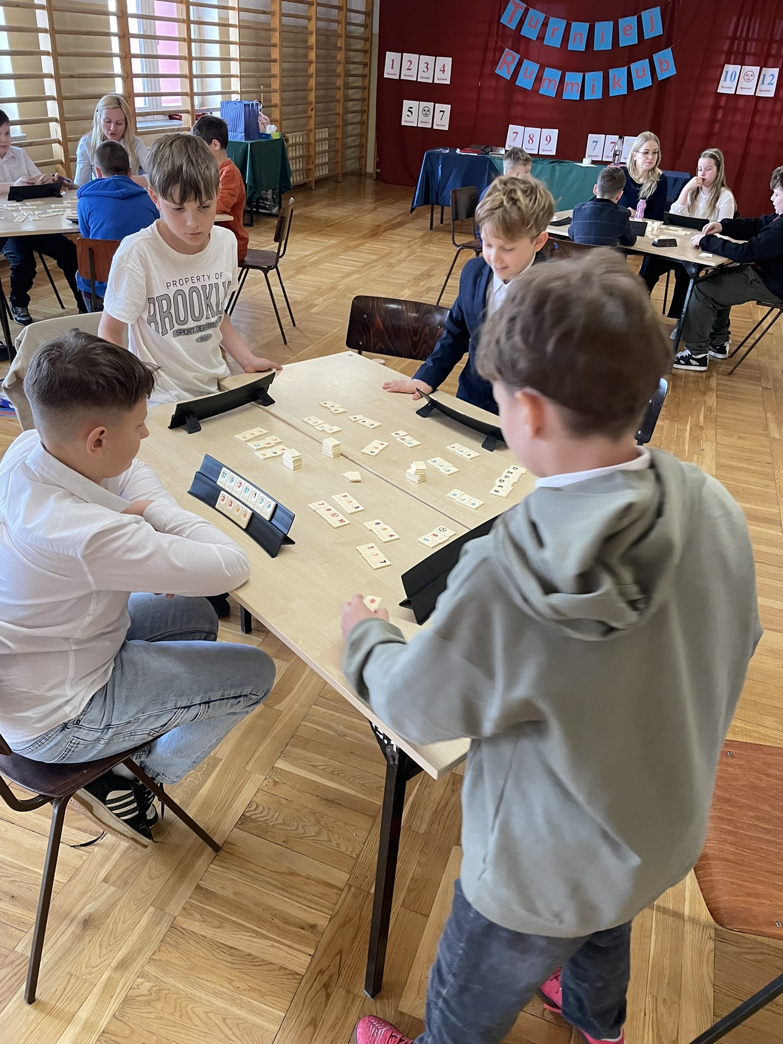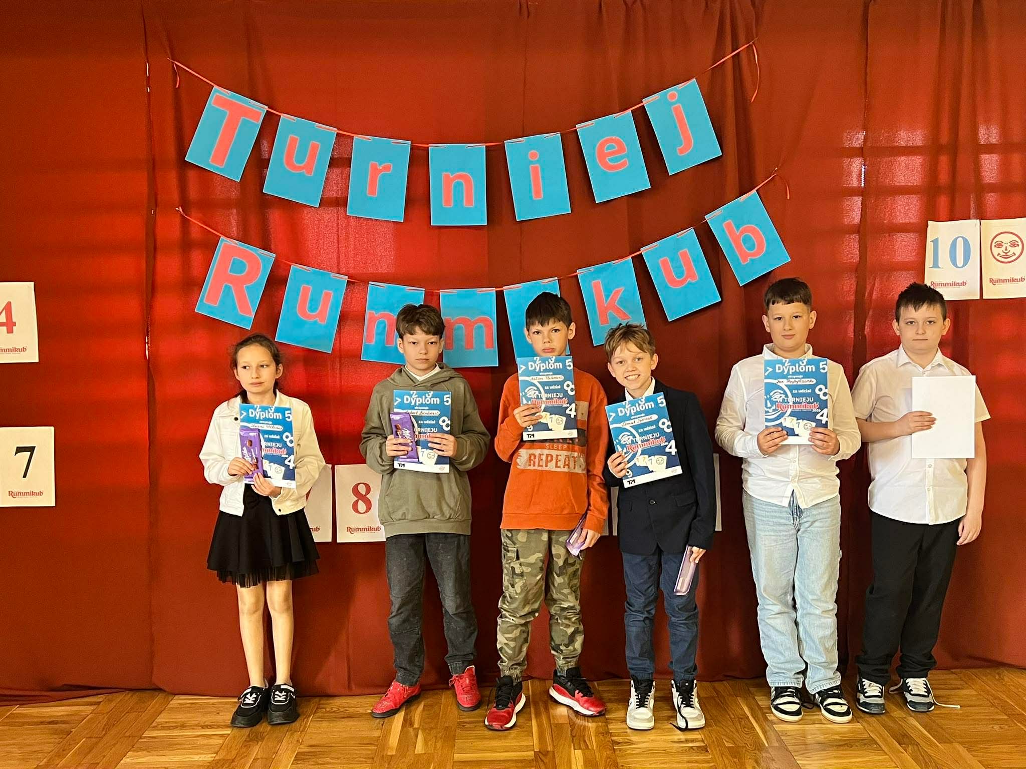 W dniu 16.04.2026 r. w Szkole Podstawowej Nr 5 w Gostyninie odbył się Turniej Rummikub dla uczniów klas czwartych. Wydarzenie zgromadziło uczestników, którzy z zaangażowaniem i dużym skupieniem rywalizowali ze sobą, rozwijając umiejętności logicznego myślenia oraz gry strategicznej. Turniej przebiegał w miłej i przyjaznej atmosferze, sprzyjającej zdrowej rywalizacji i integracji uczniów. Uczestnicy wykazali się dużym zaangażowaniem, cierpliwością oraz umiejętnością przestrzegania zasad fair play. Na podium znaleźli się: