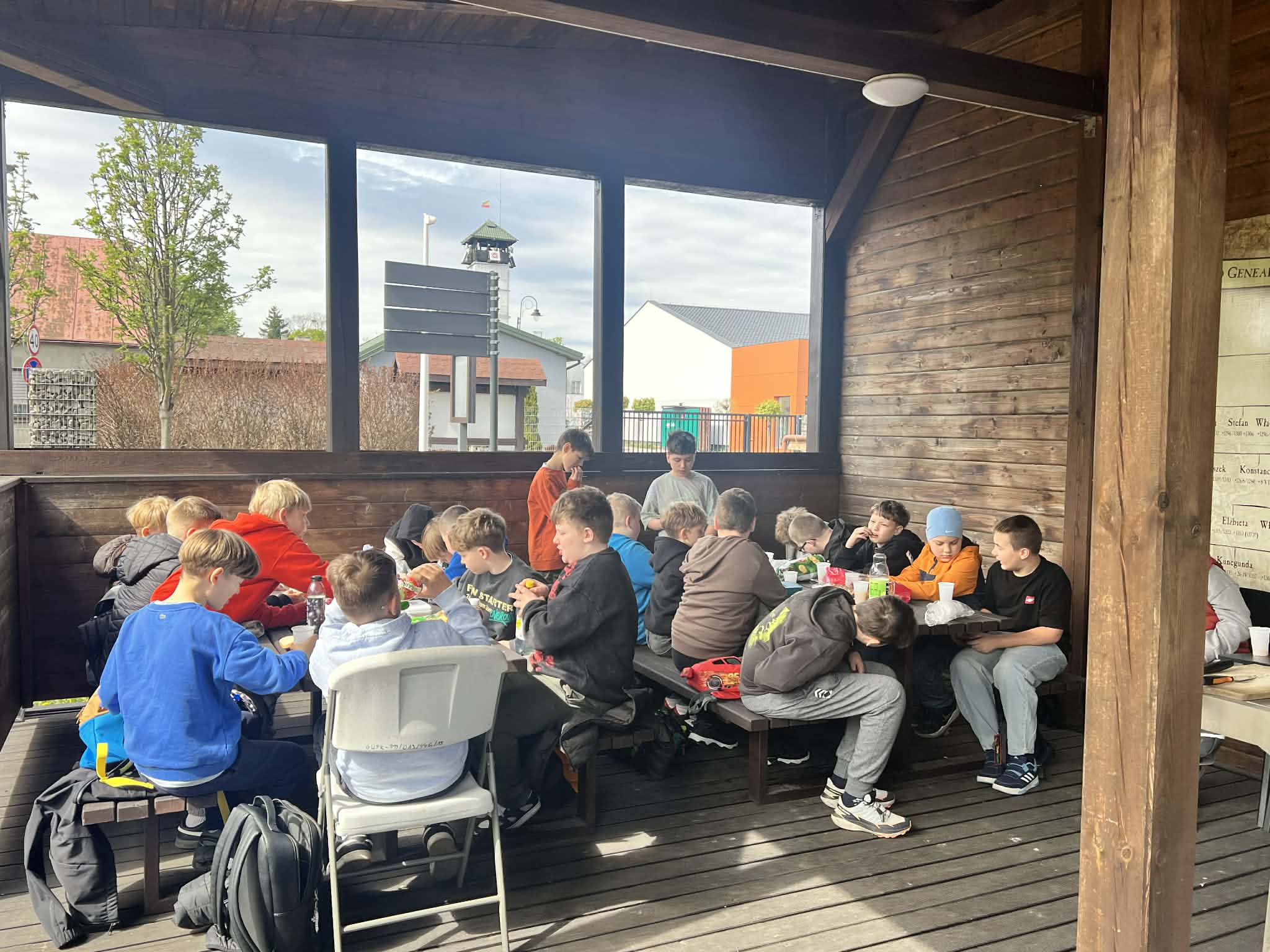 Na zdjęciu są uczniowie, w tle widać mapę Parku Narodowego.